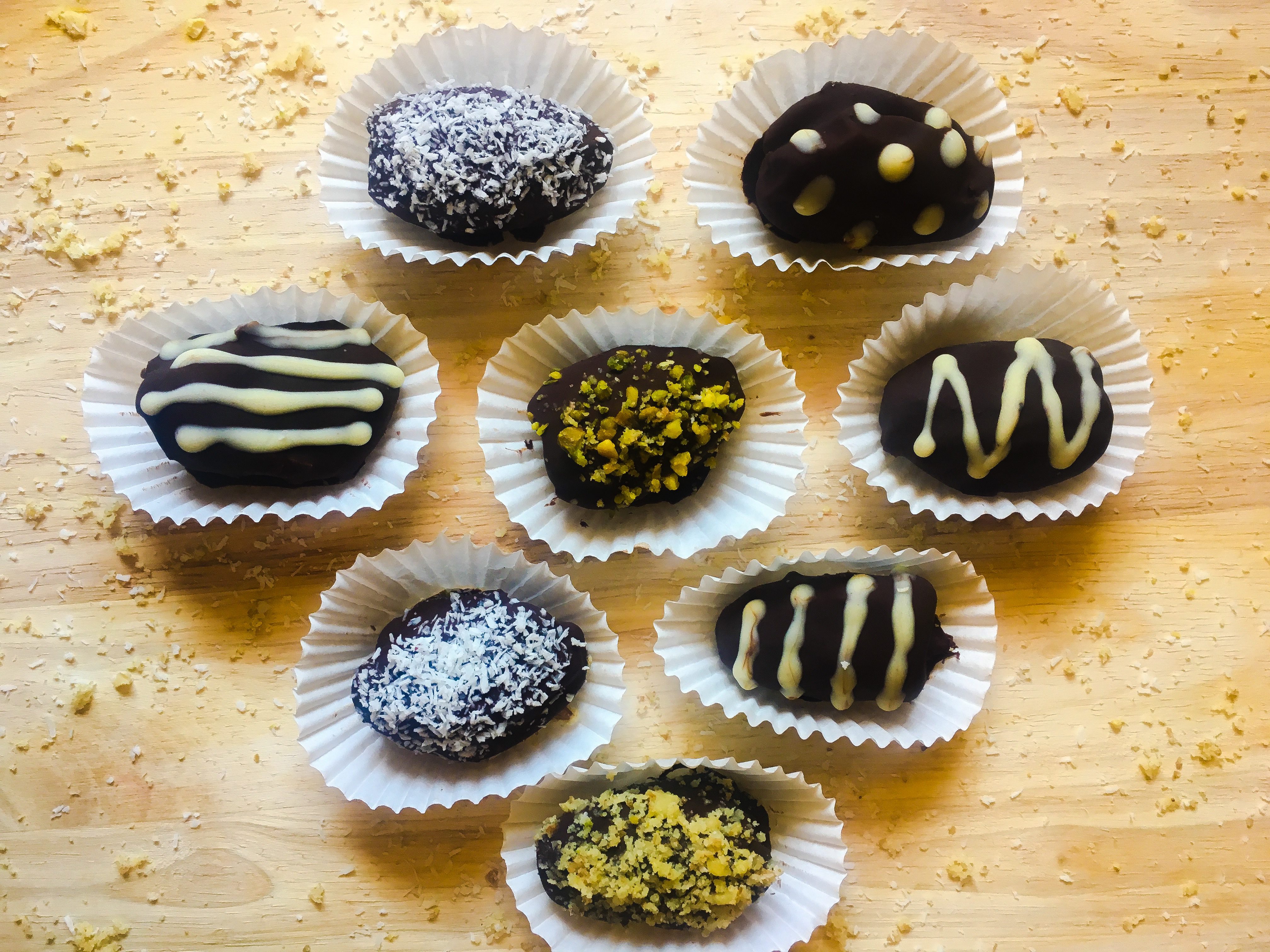 I didn’t know that dates could be stuffed let alone with chocolate. That sounds tasty and the decorations make it even more enticing, they look like chocolate eggs.