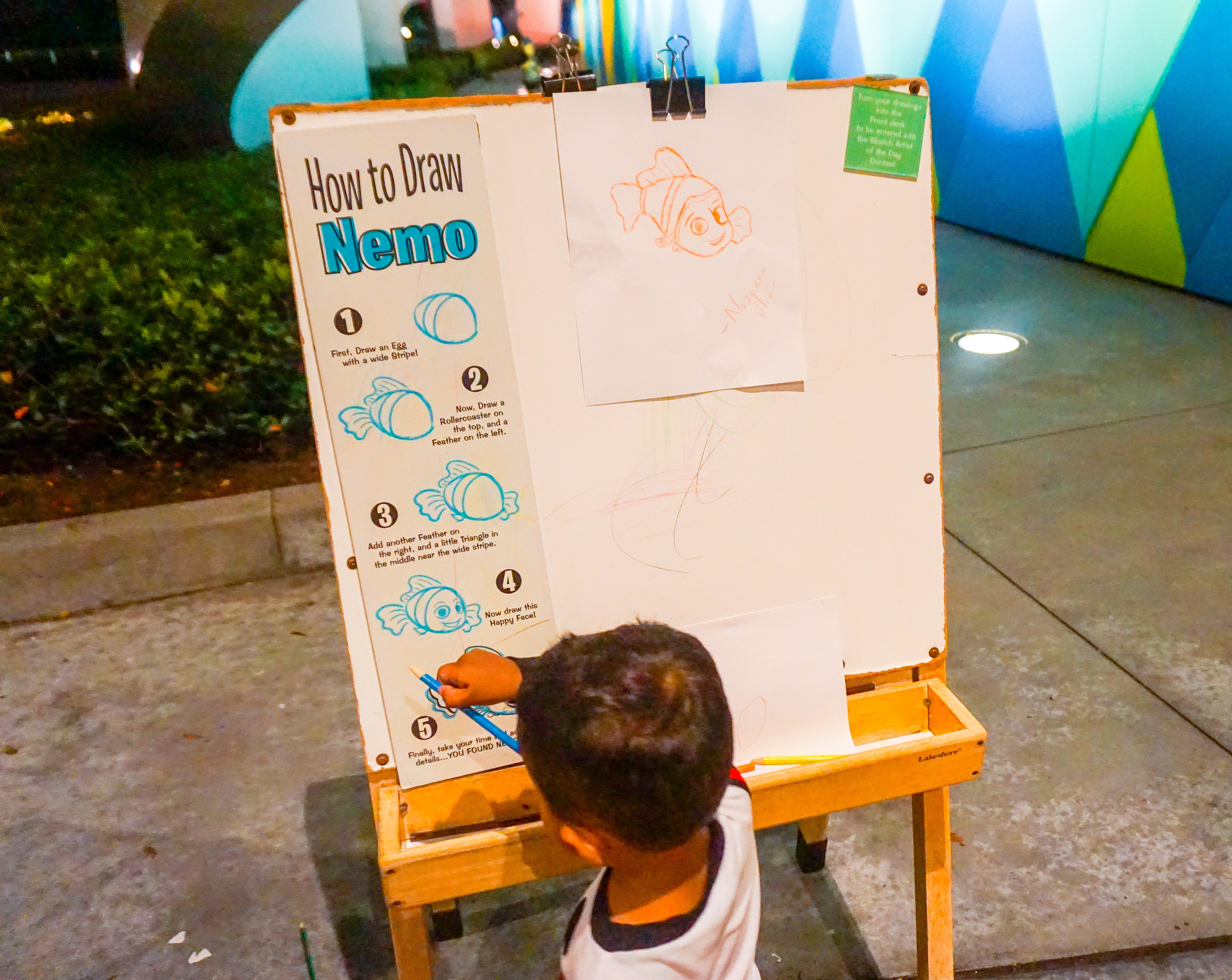 Take an art lesson :  There is a area where you can learn how to draw a Mickey and other characters in a step by step procedure. And the best one are displayed in the hotel lobby for a day .