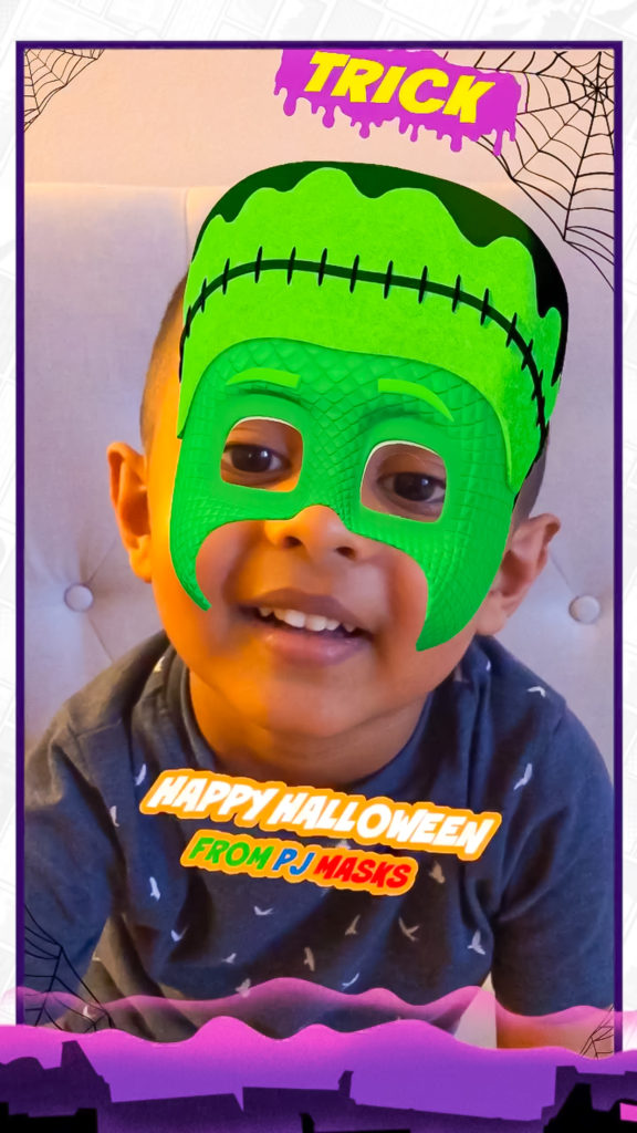 Did you know that PJ Masks has its own filter on Instagram stories?! Will you get a trick or treat?! If you haven’t checked it out yet, please click on the link here on your mobile device. Once you are done recording the video, save it to your camera roll and share it with family and friends. Don’t forget to tag @pjmasks or use the hashtag #PJMasksHalloween when you share!
