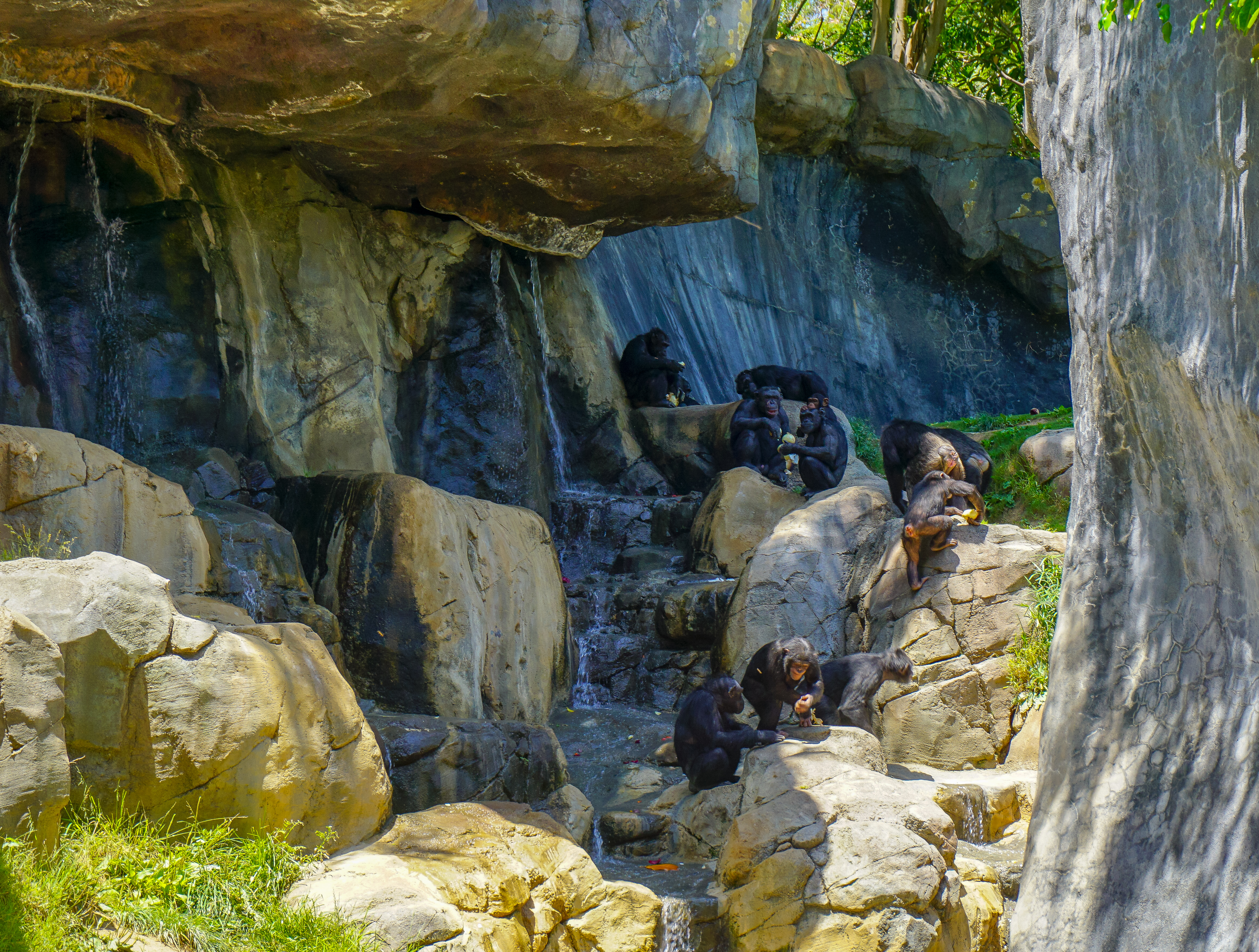 There were more than 15 chimpanzees wandering all over the place, some were really close to us and some were chilling at the water fall.