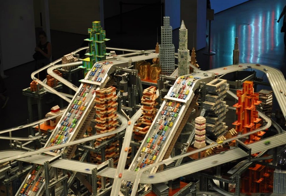 I totally loved all the arts by Chris Burden and the art Metropolis II was one of it. The art piece is basically an entire miniature city with freeways, skyscrapers and tons of hot wheel cars. It was so huge that it took up a whole room. All the cars moved around the whole display and the funny part was there was even a traffic jam at one point.How Amazing is that !!
