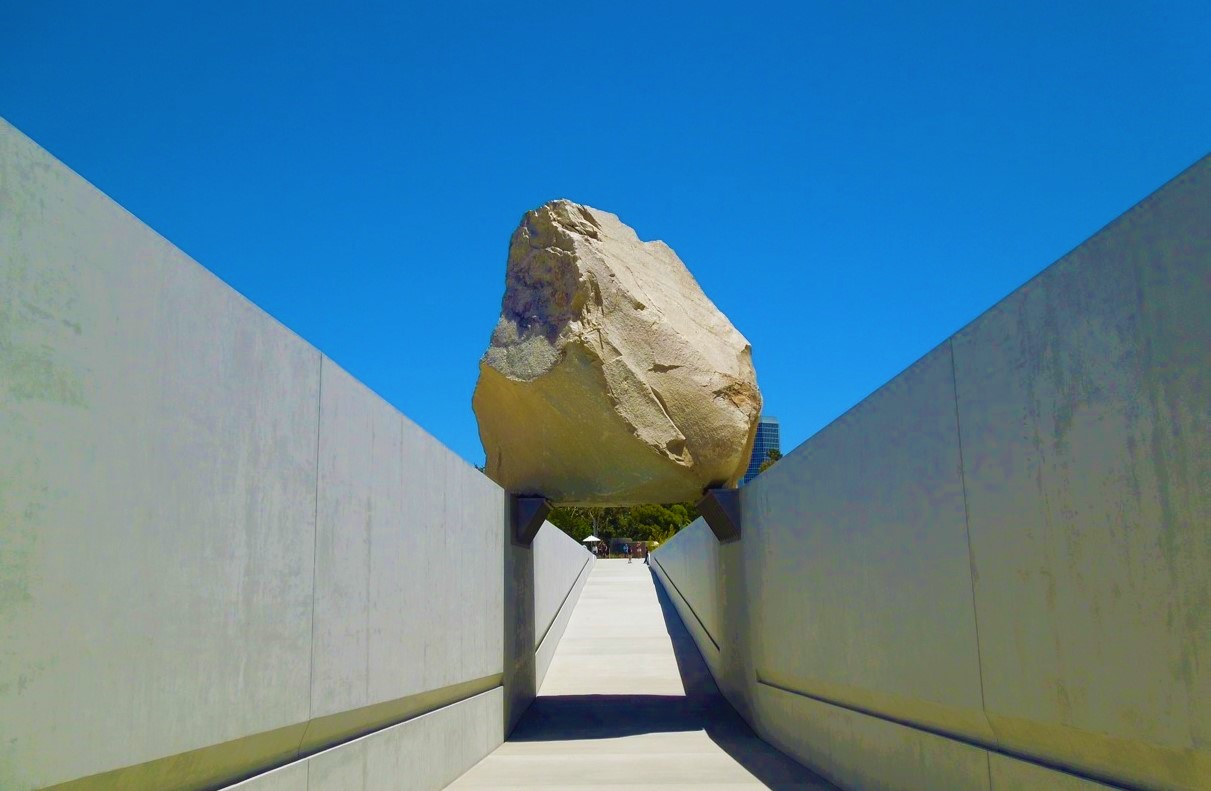 There’s a Levitated Mass by Michael Heizer, which  consists of a 340-ton boulder affixed above a concrete trench through which visitors may walk.It is open to public during museum hours and does not require museum admission.